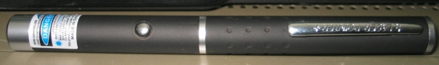 The 5mW Violet Purple Blue Ray Blue Laser Module Pen is a violet-emitting, directly-injected laser. That is, it produces violet laser radiation directly, without the need for messy, fragile nonlinear crystals like those green laser pointers and the amberish-yellow and blue ones as well. It uses two AAA cells -- the same power source used in most other "pen-style" laser pointers and laser modules.