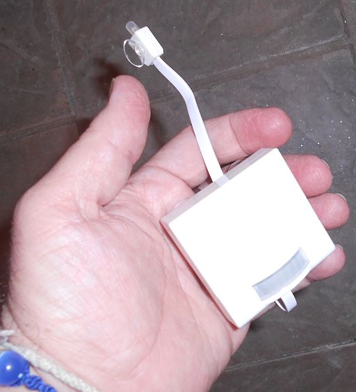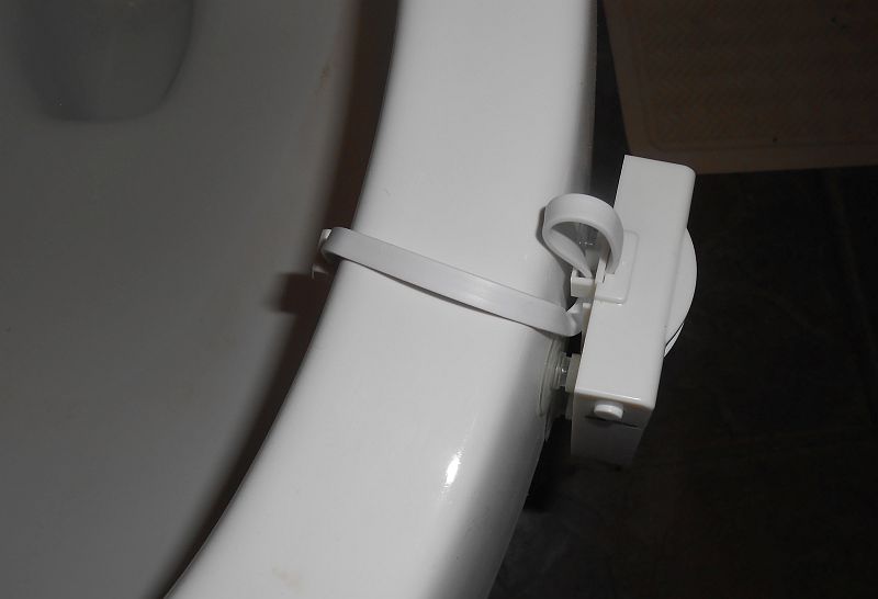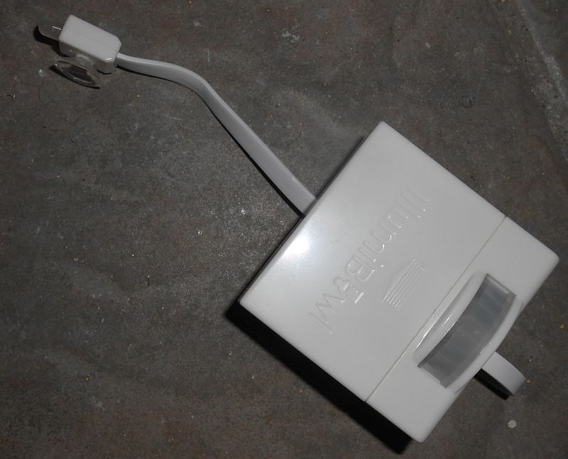 It senses your approach in the dark with a PIR (passive infrared) sensor, and it fits any Western-style toliet (unlike the LavNav Toliet Nightlight which will not function if your water closet has a horseshoe seat).