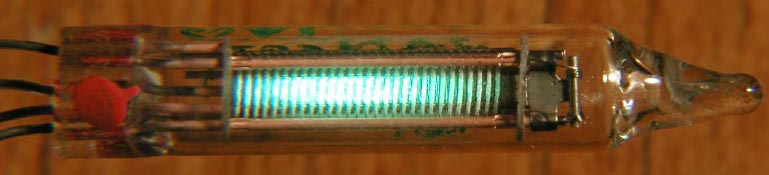 HAVE YOU SEEN ME? I am a 6977 vacuum tube, a low voltage indicator lamp that was the immediate predecessor to the visible light LED. I am about twice the length of a common NE-2 neon bulb, and I think I glow green. :-)