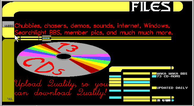 This is another screen from Waka Waka BBS - the files menu.