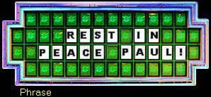 UPDATE 05-08-08: I have a ~98% certainty that I just saw Paul's "Spin ID" number on Wheel of Fortune!!! If Paul was still with us, he'd have won a trip to the Carribean!!!
