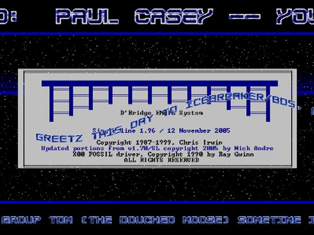 This version of Paul Casey's memorial demo is the latest one (03-29-10) - a screen from Paul's Waka Waka BBS was used and it has had the sinus text removed; like the last two, some viewers may find it easier on the 'ol eyeballs.