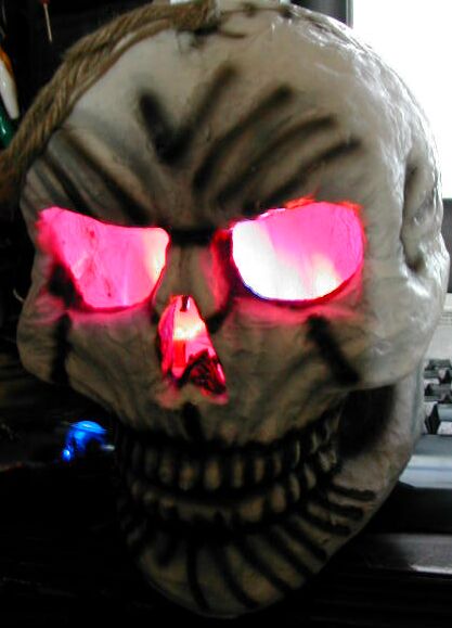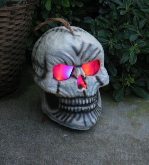 Here is a photograph I took on Halloween of the skull lamp deployed on our porch: