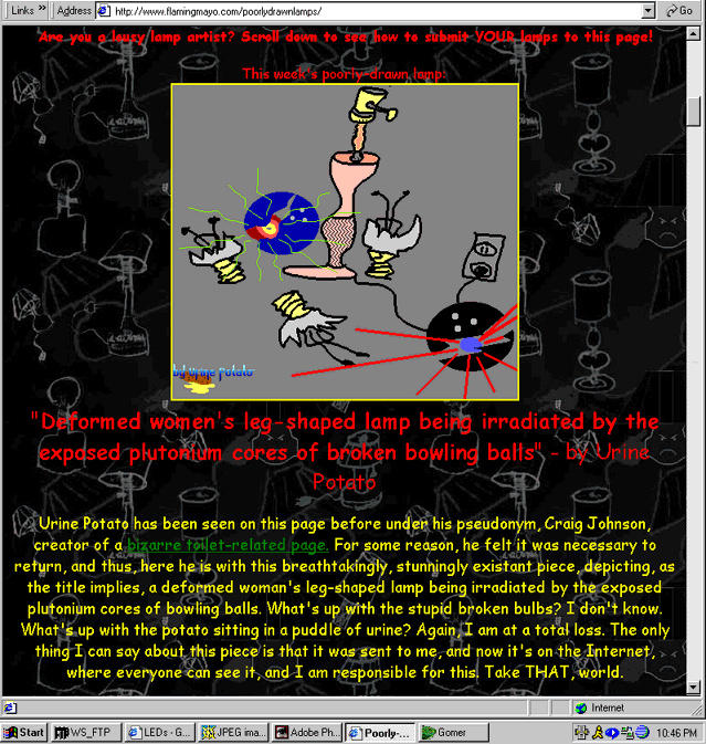 Worm Quartet will probably have a field day writing a song about it and putting it on their next Piss Potty CD, or maybe they'll use it as a theme for a poorly-drawn lamp on their Poorly Drawn Lamp Page.