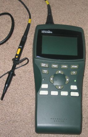 This is Velleman's model HP10 personal oscilloscope. It is fully self-contained -- that is, you need not be near an AC receptacle in order to use it.