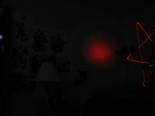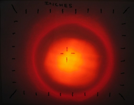 Photograph of its beam on a wall at ~10 feet.