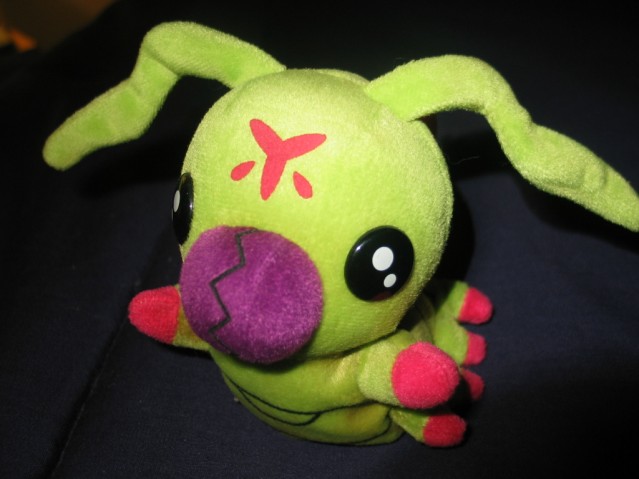 This is simple really...it's a Wormmon (Digimon plush) {stuffed critter}.