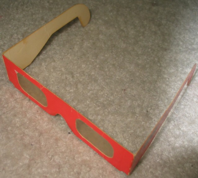 The Edmund Scientific Rainbow Glasses are paper glasses with diffraction gratings where the lenses would normally be found.