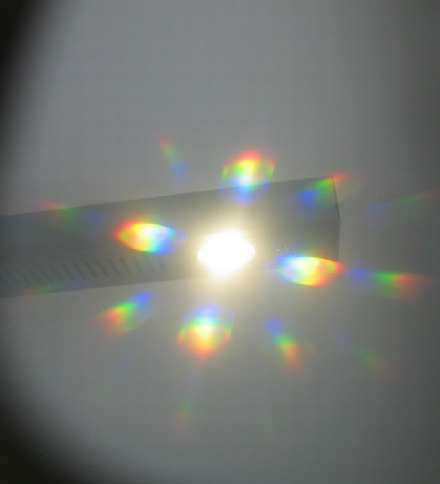 What they do is split light into its component spectra; for white light, this would yield you an image with "rainbow" splotches at eight different angles from the light source: 45°, 90°, 135°, 180°, 225°, 270°, 315°, and 360°.