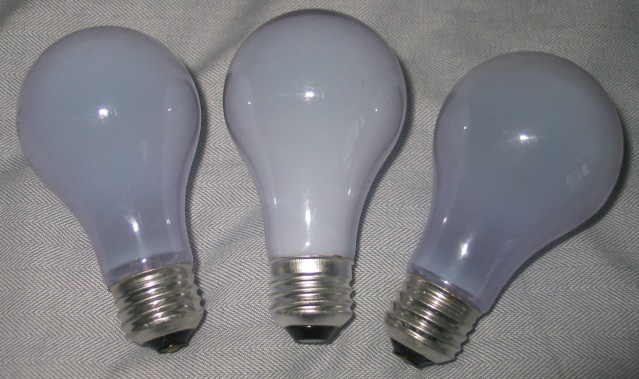 These are glass light bubs (or "light globes" as some people call them), not flashlights designed to be bashed, thrashed, trashed, and abused. So I won't throw them against the wall, stomp on them, try to drown them in the toliet bowl or the cistern {toliet tank}, run over them, swing them against the concrete floor of a patio, use a small sledgehammer in order to bash them open to check them for candiosity, fire them from the cannoņata, drop them down the top of Mt. Erupto (I guess I've been watching the TV program "Viva Piņata" too much again - candiosity is usually checked with a laser-type device on a platform with a large readout (located at Piņata Central), with a handheld wand that Langston Lickatoad uses, or with a pack-of-cards-sized device that Fergy Fudgehog uses; the cannoņata (also located at Piņata Central) is only used to shoot piņatas to piņata parties away from picturesque Piņata Island, and Mt. Erupto is an active volcano on Piņata Island {In the episode "Les Saves the Day...Again", Paulie Preztail says "Hey, ever wonder why this park's called 'Mount Erupto' anyway?", then Franklin Fizzlybear says "I think its an old native term. Means 'very safe.'"}), send them to the Daystrom Institute for additional analyses, or inflict upon them punishments that flashlights might have to have performed on them. So this section of the web page will be ***SIGNIFICANTLY*** more bare than this section of the web page on a page about a flashlight.