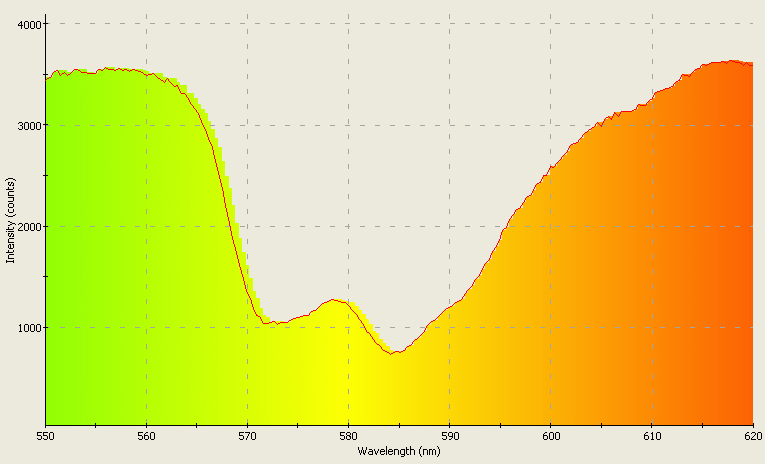 550nm and 620nm to show the Nd (neodymium) absorption spectral feature.