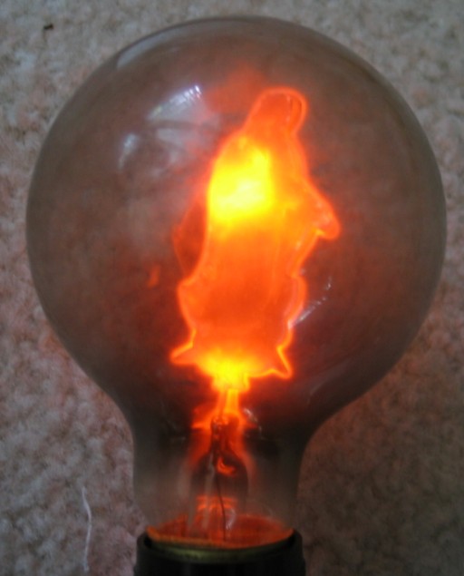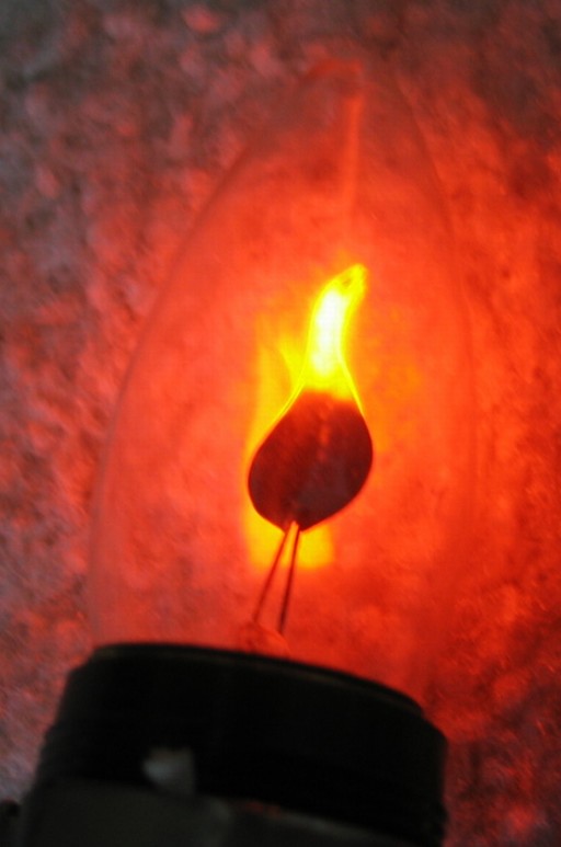 Photograph of the "Flicker-Flame" lamp operating.