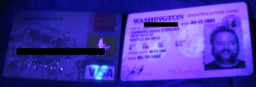 Photograph of security features of a bank card and a Washington