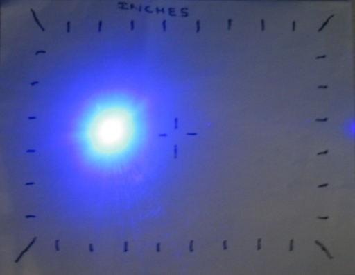 Beam photograph of this unique laser on the test target at 12".