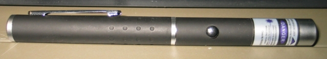 The 5mW Violet Purple Blue Ray Blue Laser Module Pen is a violet-emitting, directly-injected laser. That is, it produces violet laser radiation directly, without the need for messy, fragile nonlinear crystals like those green laser pointers and the amberish-yellow and blue ones as well. It uses two AAA cells -- the same power source used in most other "pen-style" laser pointers and laser modules.