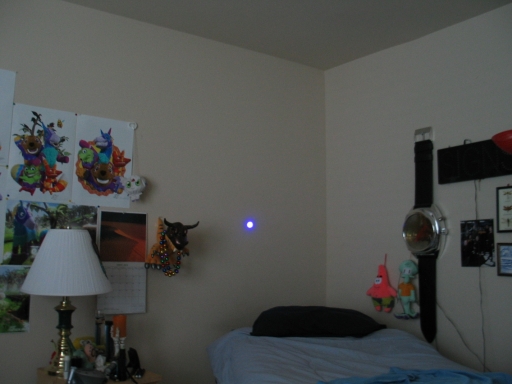 Those colored graphics toward the left are my "Viva Piņata" posters, and that clock on the right that looks like a gigantic wristwatch is my Infinity Optics Clock.
