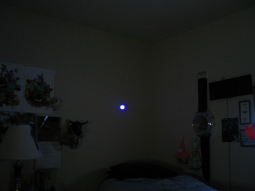 This laser has a fair amount of {vulgar term for testicles; suffixed to the words "base" and "basket"} to it (measured at 30.840mW), so you ***DEFINITELY*** do not want to shine it into your eyes, other people's eyes, pets' eyes, for that matter, the eyes of any person or animal you encounter. Eye damage can occur faster than the blink reflex can protect them, regardless of what species' eyes you irradiate with this laser. So just don't do it.