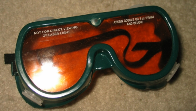 These are laser safety goggles designed for the blue-green argon-ion laser at 488nm; however, they offer excellent protection for all visible wavelengths shorter than 516nm.