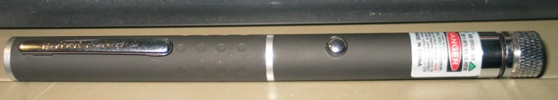To use the laser module to point something out, unscrew & remove the diffraction grating tip, aim it at something you wish to point out, and press & hold down the button on the barrel for as long as you need the laser spot. Release the button to turn the laser module back off. Yes, it really is as easy as that.