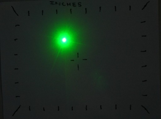 Beam photograph on the test target at 12"; diffraction grating removed.