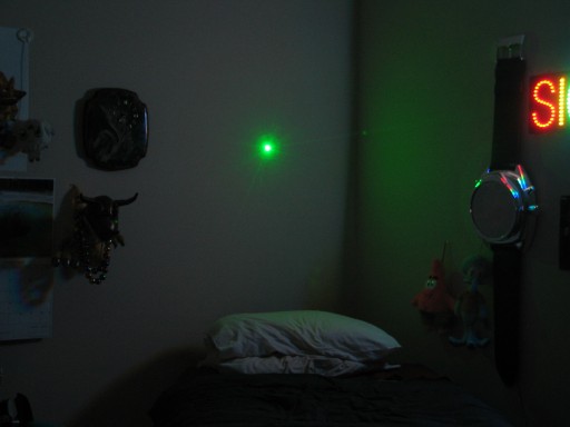 Video on YourTube showing this laser directed at the ceiling (with diffraction optic in place); optic was slowly rotated.
