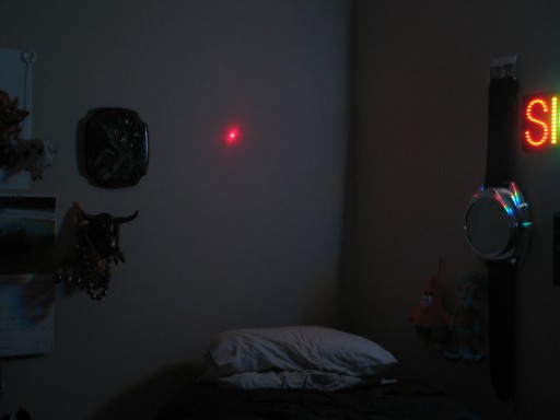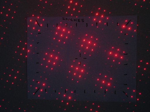 Actually, I can say a bit more about it. What sets this portable laser apart from most others you can get isn't the red laser diode buried inside. And it isn't the AAA cells it feeds from either. It's that moveable holographic diffraction grating optic on the unit's "business end" that allows it to project "stars" when the button is pressed, rather than just a single dot like most other pointers, laser modules, and portable lasers. This grating can be rotated to project any of quite literally HUNDREDS of different patterns.