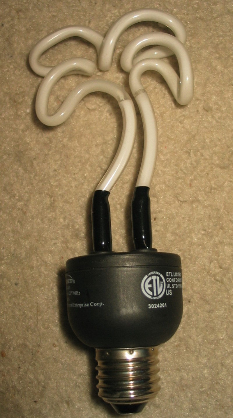 This is a fluorescent light bulb, not a flashlight designed to be thrashed, trashed, and abused. So I won't throw it against the wall, stomp on it, try to drown it in the toylet bowl or the cistern, run over it, swing it against the concrete floor of a patio, use a small sledgehammer in order to bash it open to check it for candiosity, fire it from the cannoņata, drop it down the top of Mt. Erupto (I guess I've been watching the TV program "Viva Piņata" too much again - candiosity is usually checked with a laser-type device on a platform with a large readout (located at Piņata Central), with a handheld wand that Langston Lickatoad uses, or with a pack-of-cards-sized device that Fergy Fudgehog uses; the cannoņata (also located at Piņata Central) is only used to shoot piņatas to piņata parties away from picturesque Piņata Island, and Mt. Erupto is an active volcano on Piņata Island {In the episode "Les Saves the Day...Again", Paulie Preztail says "Hey, ever wonder why this park's called 'Mount Erupto' anyway?", then Franklin Fizzlybear says "I think its an old native term. Means 'very safe.'"}), send it to the Daystrom Institute for additional analysis, or inflict upon it punishments that a flashlight might have to have performed on it. So this section of the web page will be ***SIGNIFICANTLY*** more bare than this section of the web page on a page about a flashlight.