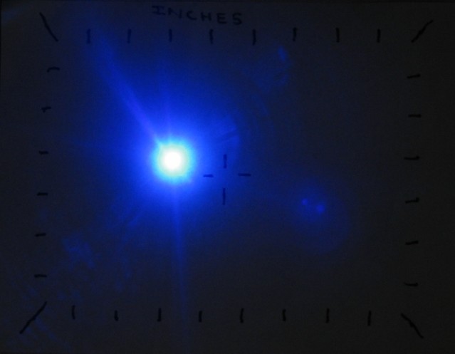 Beam terminus photograph of this unique (well, "not-so-unique" now) laser on the target at 12".