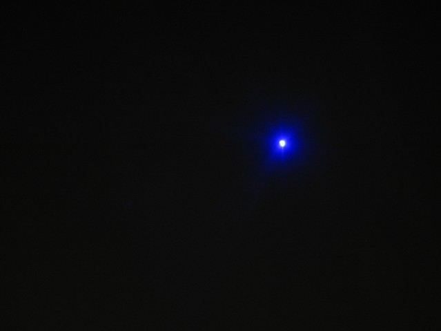 And para los motivos de Cristo (and for heaven sakes and for Pete sakes and for your sakes too) do not shine this laser at any vehicle, whether ground-based like a motorcycle, car, or truck, or air-based like a helicopter, airplane, or jet. And if you shoot it at a person in the dark and he turns out to be a police officer, he may think he's being targeted, unholster (whip out) his gun, and hose you down with it.