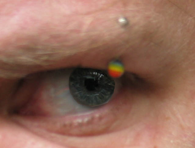Photograph showing the ring where it belongs -- in my eyebrow of course.