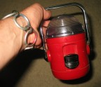 It comes in a red plastic body, and has a large, transparent, somewhat prismatic dome on its top to help diffuse light from its lamp.