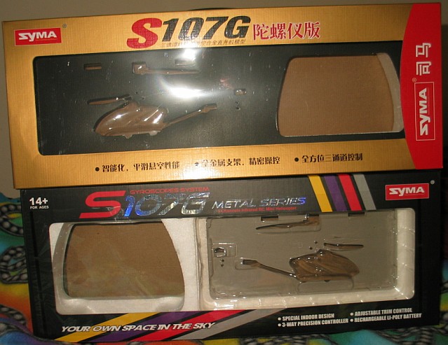 I took note that my red and yellow S107G helis came in different boxes...to wit: