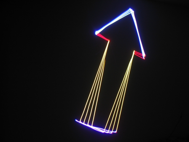 Photograph of another one of the patterns on a wall at ~8 feet -- a rotating arrow.
