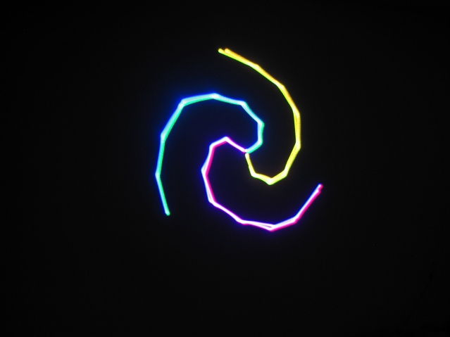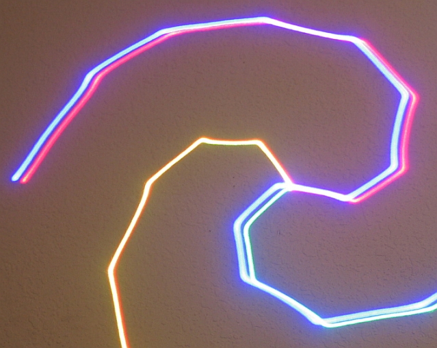 Photograph of another one of the patterns on a wall at ~8 feet -- a rotating spiral.