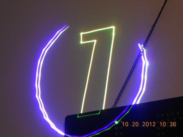 Used with explicit written consent (not just implied oral consent) from Guyfromhe on Laser Pointer Forums, comes this YouTube video he made, using the laser show software written by "whiteg" from the Photonlexicon fora {the actual thread on PL is right here if you're interested}: