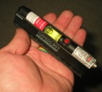 What this is is a small laser level (with inbuilt bubble level) intended for construction use. It has a red diode laser that feeds from a pair of AA cells, and comes in a metal & plastic body.