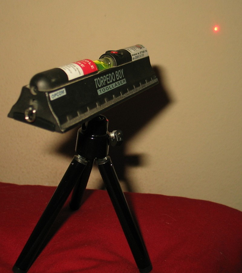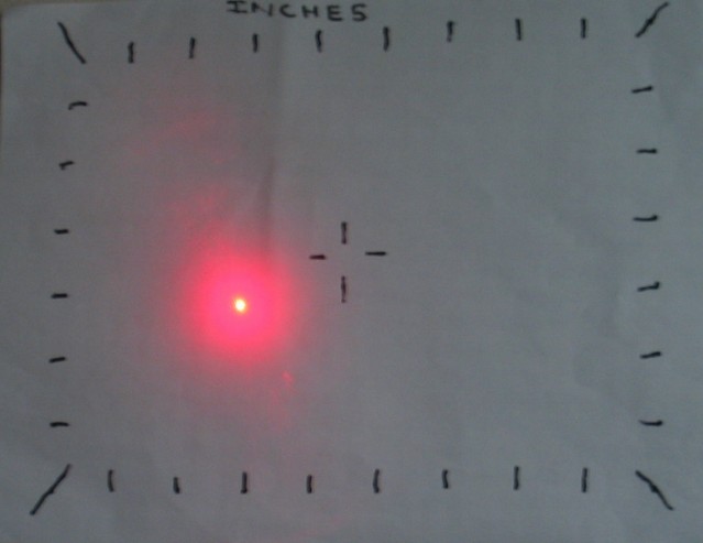 The laser level's dot on the target approximately 12" away.