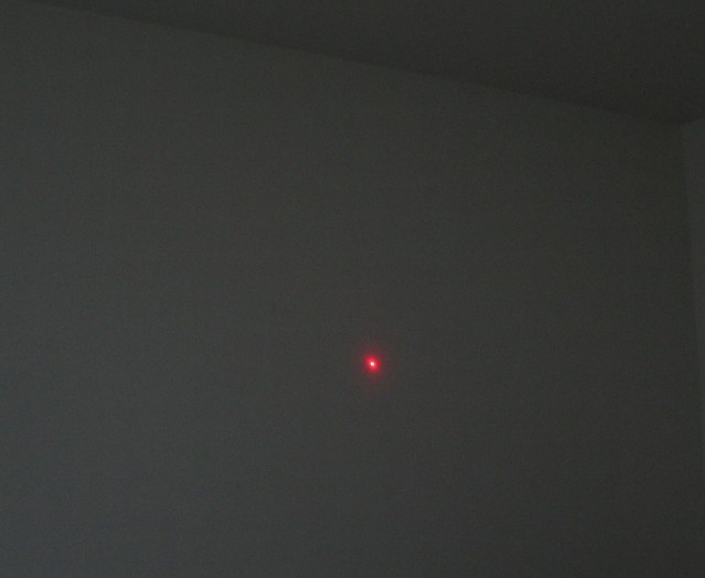 The laser level's "dot" on a wall ~10 feet away.