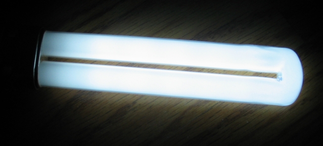 Test unit (lamp and ballast for it) was loaned to me by a website viewer (R.W. from Virginia USA) who requested spectroscopy of it and was received on the morning of 11-14-11 (or "14 Nov. 2011" or even "Nov. 14, Twenty Double Sticks" if you prefer); since it *IS* a light-emitting product, it was *MY* decision to add it to this website. Since its owner does require its return, the dreadful "" icon will be used at once, denoting the fact that I no longer have custody of it for future comparisons or analyses.