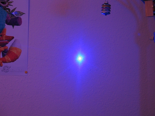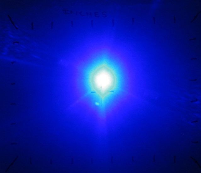 Color (royal blue @ ~448nm) is exceptionally vibrant and unusual for a handheld laser