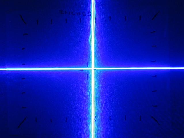 Beam photograph on the test target at 12"; cross-effect lens used.