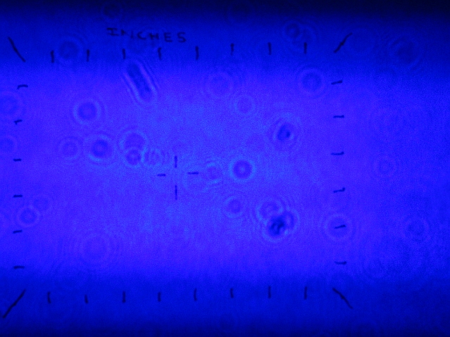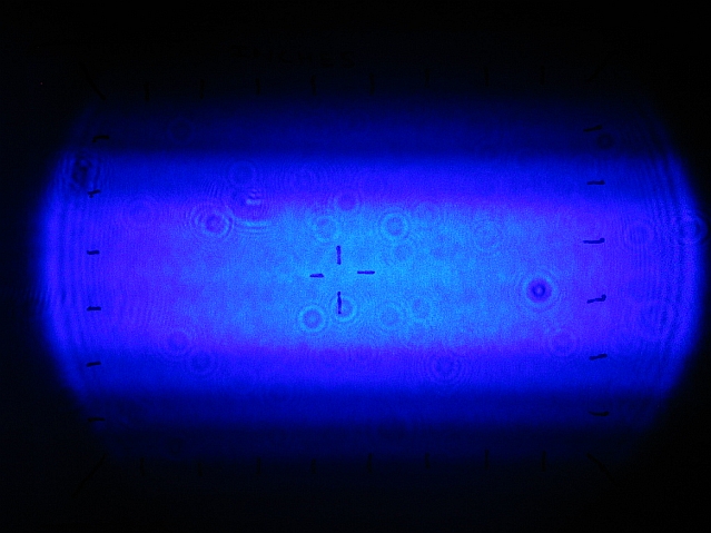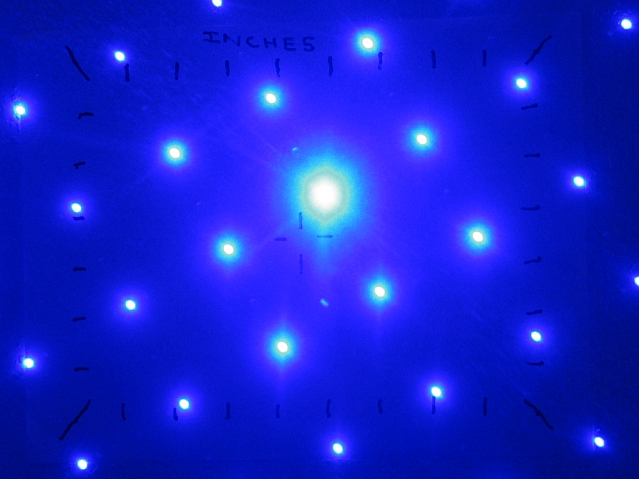 Beam photograph on the test target at 12"; galaxy effect (starfield generator) lens used.