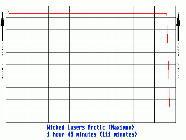 • Max Power, Beacon mode (laser blinks at 0.20Hz {1 flash every five seconds})