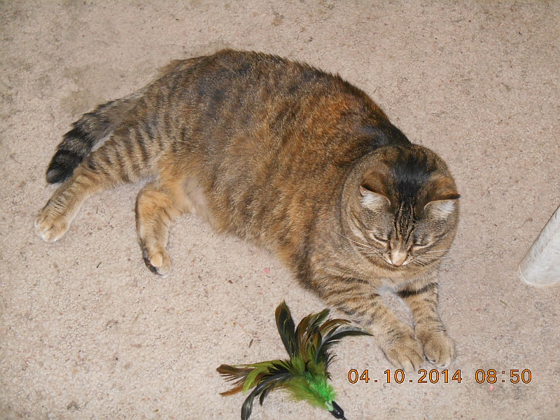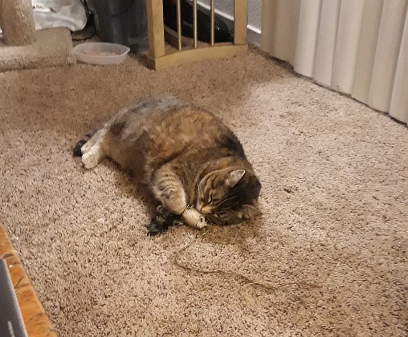 This pic shows Baby lying on the rug near one of her cat toys.