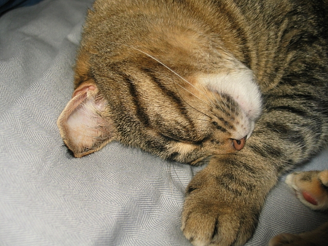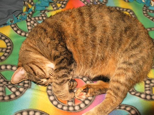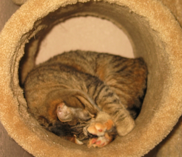 We adopted this kitty cat in April 2009 and had her spayed some number of months later.
