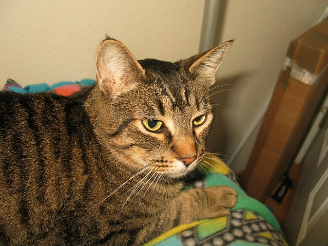 The kitty cat does not emit light of its own (he's a cat for Christ sakes!!!), so the standard review format will not be used and the kitty will not be assigned a rating. This page will contain mainly just ten photographs and one video (as of 02-04-12).