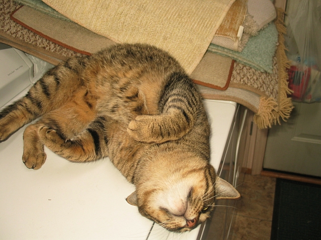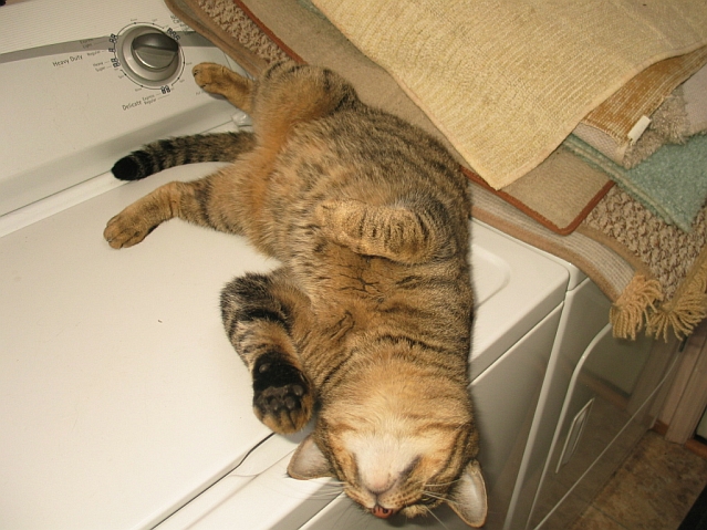 The above three photographs of him on the washingmachine were taken on the morning of 02-20-12 (or "20 Feb. 2012" or even "Feb. 20, Twenty Stick Very-Twirly-Stick" if you prefer).