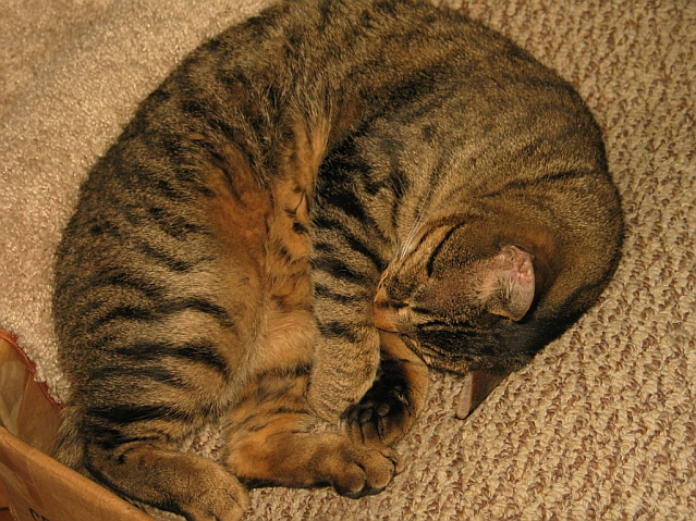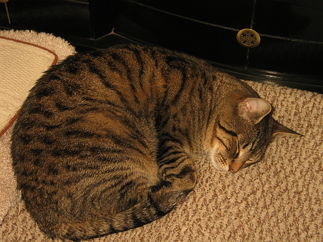 This photograph of Bear-Bear curled up asleep in his favourite new place by the bathroom door was taken on the afternoon of 03-02-12 (or "02 Mar. 2012" or even "Mar. 02, Twenty Stick Very-Twirly-Stick" if you prefer).