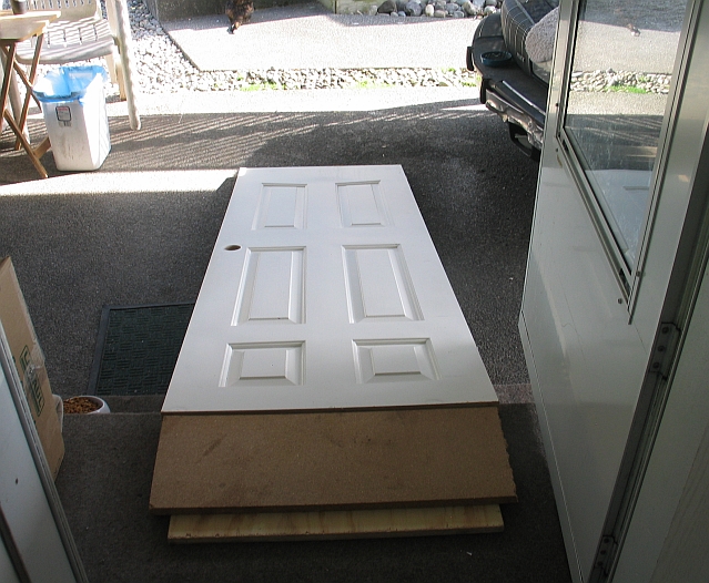 In order to GET outside in the first place, I made the following ramp out of a door I found in the outdoor storage shed cum pantry:
