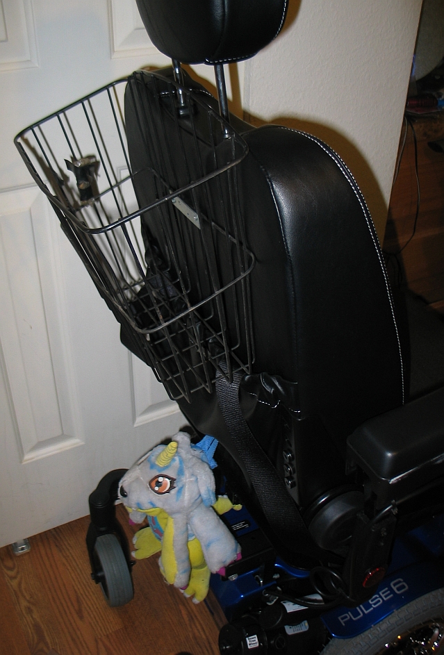 This is the seatback basket mod that I've performed on every scooter and powerchair I've owned.